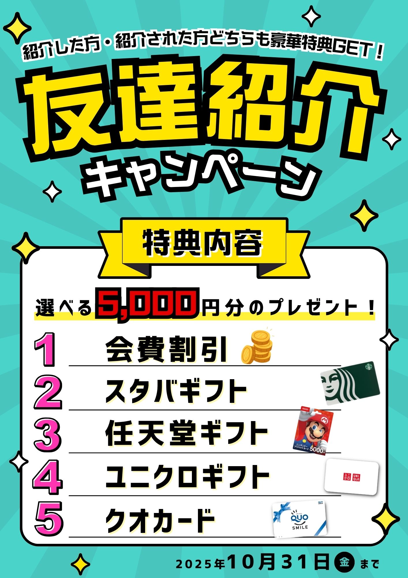 10月31日(金)までに、ご紹介された方のご入会が条件となります!