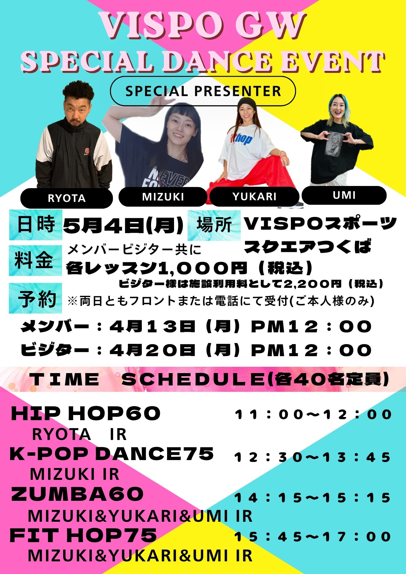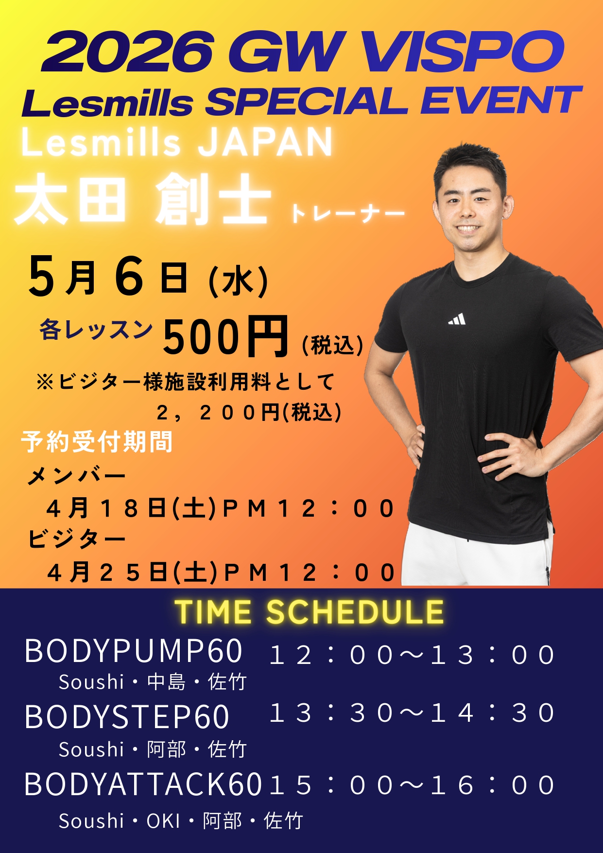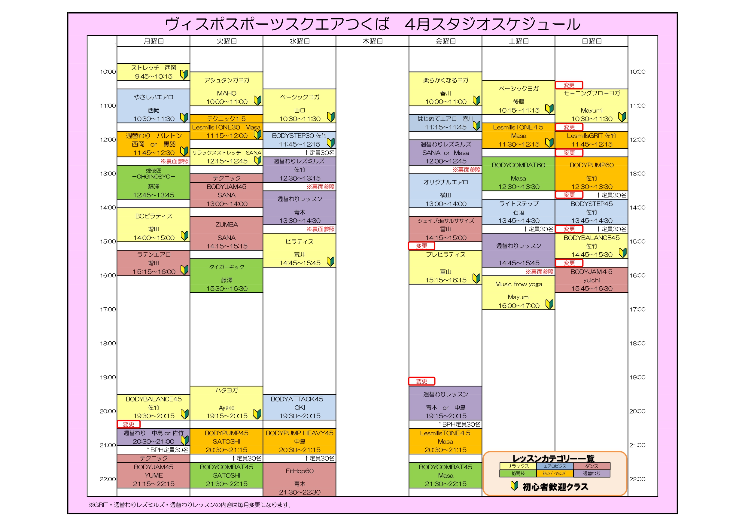 こんにちは!! 4月レッスンスケジュール 4月週替わりレッスンスケジュール 代行案内 GWレッスンスケジュール 5/4(月)イベントレッスン詳細 5/6(水)イベントレッスン詳細 になります! 詳細は以下の画像をご確認下さい。
