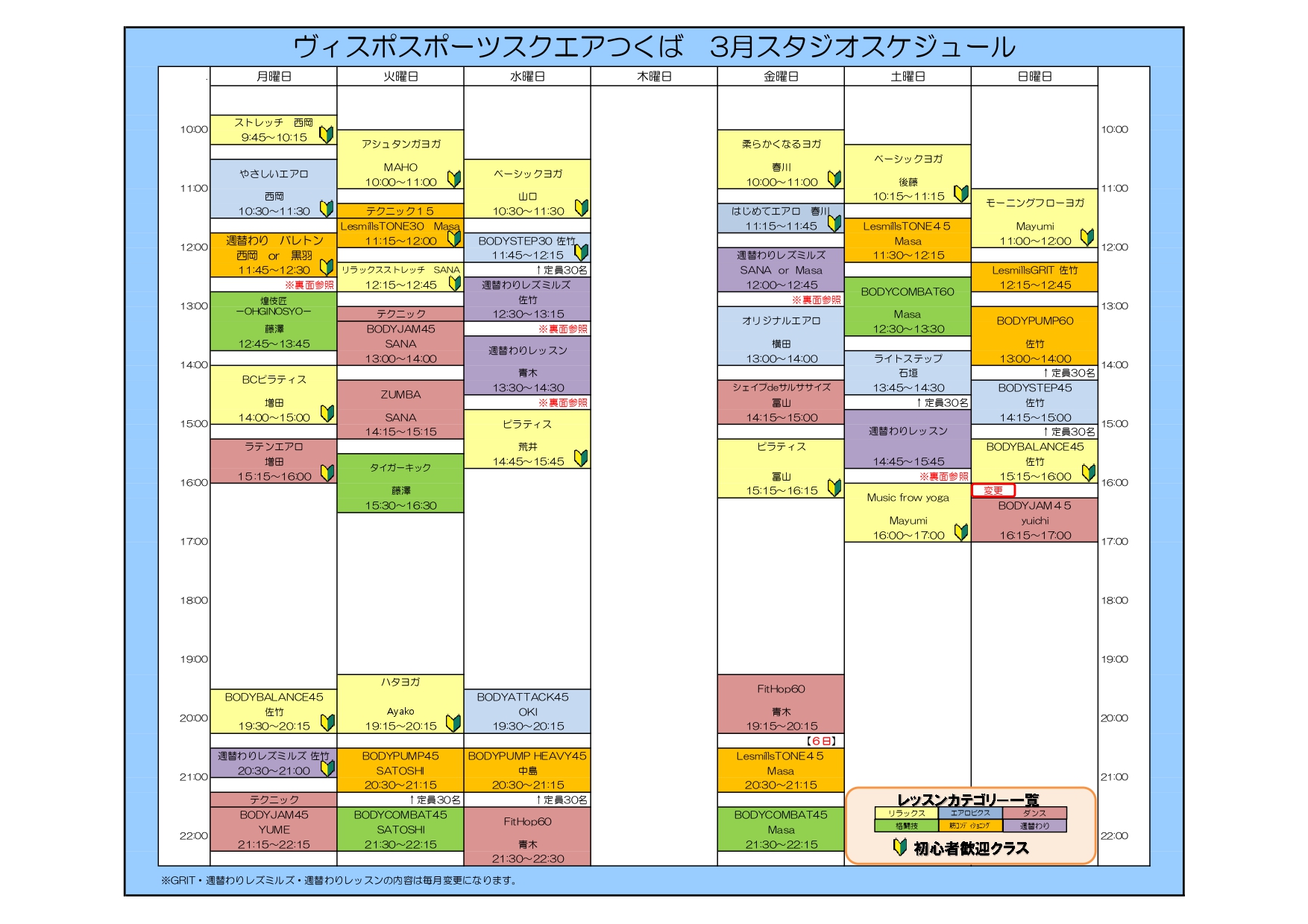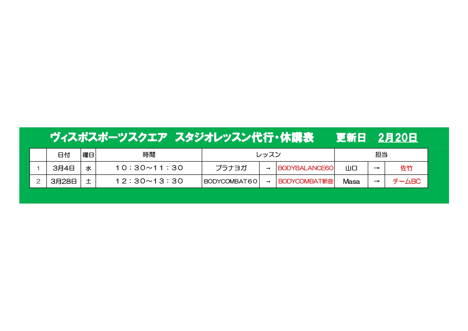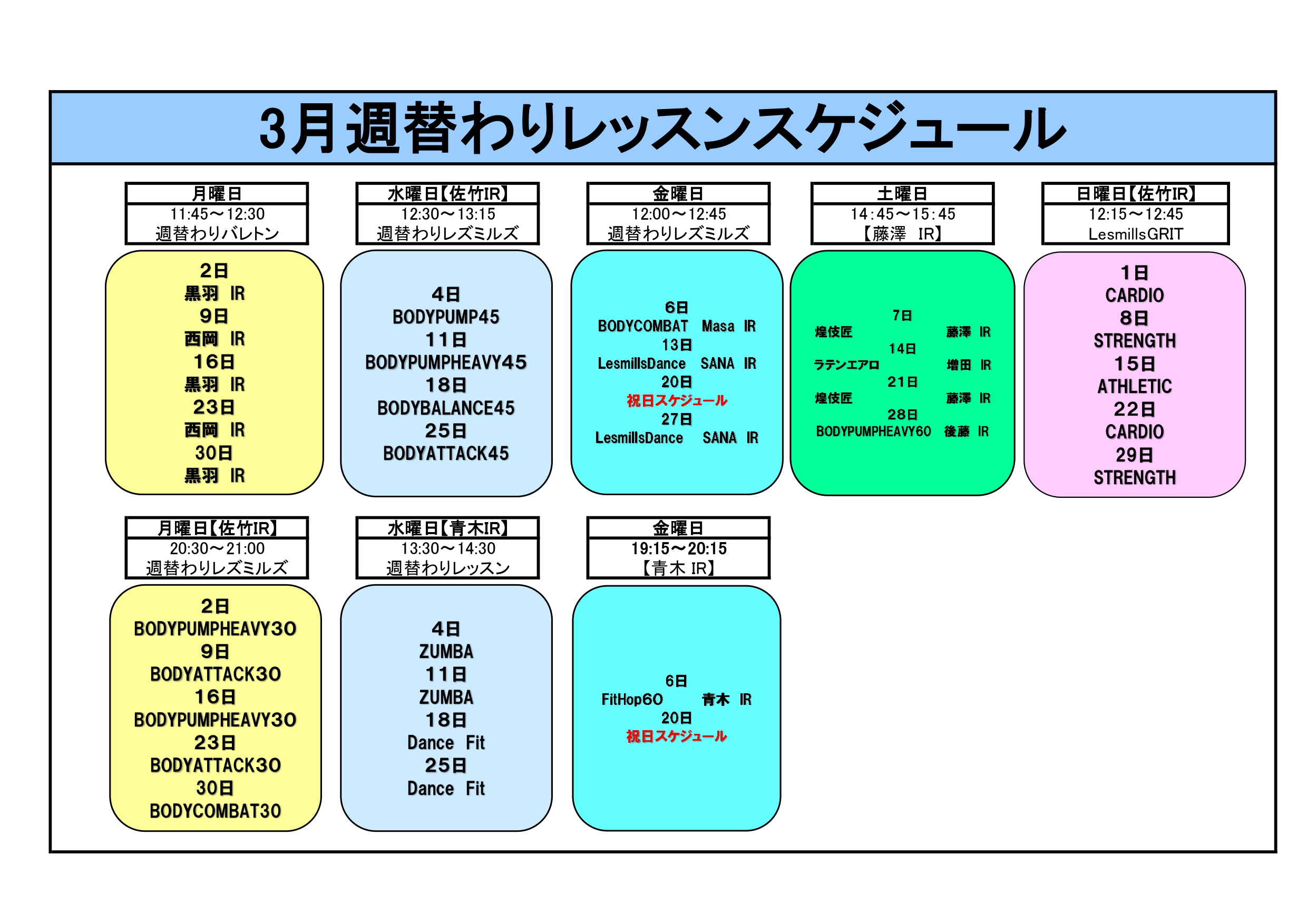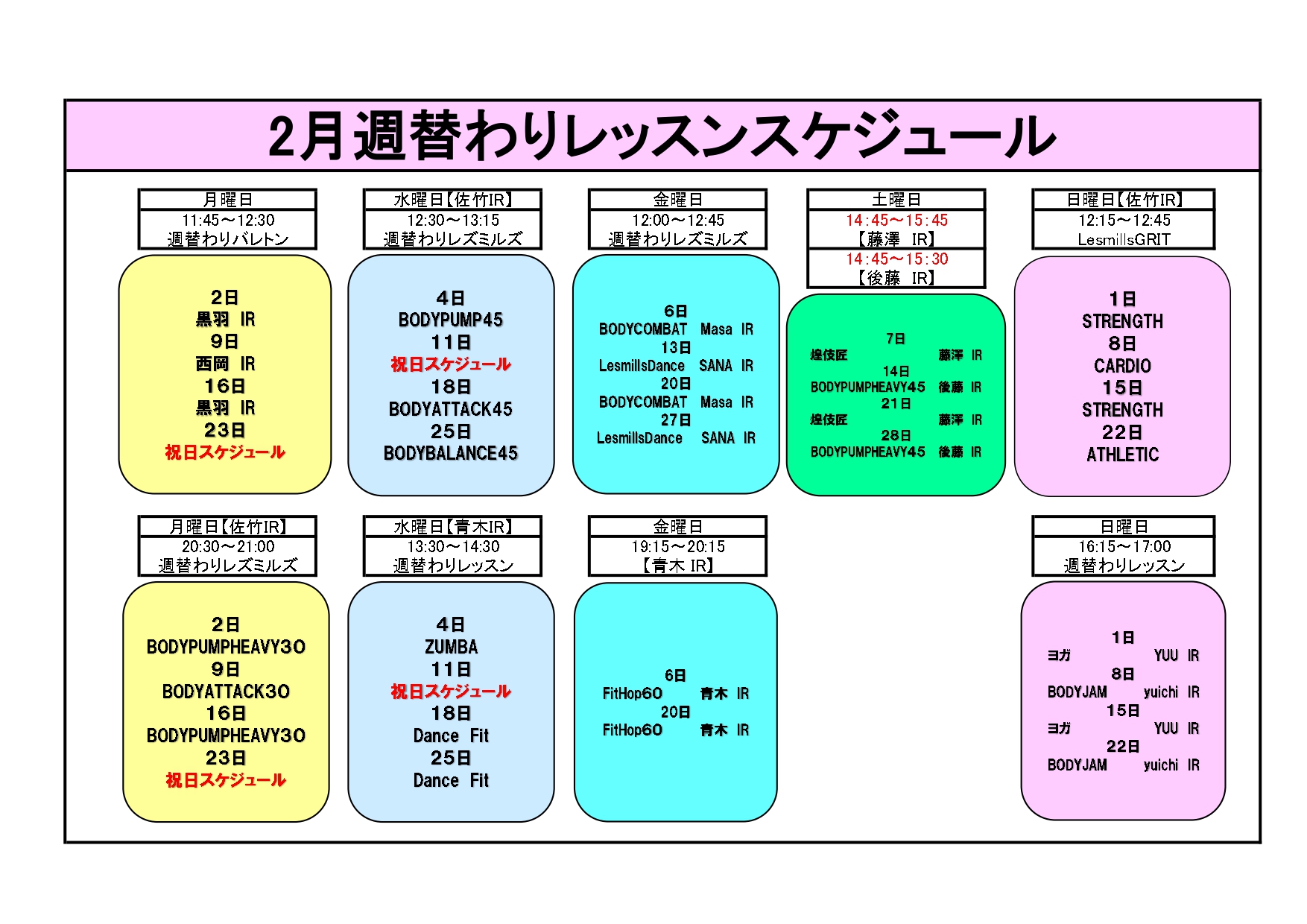 【2月、3月】レッスンスケジュール・祝日スケジュール・代行案内(2月20日更新)