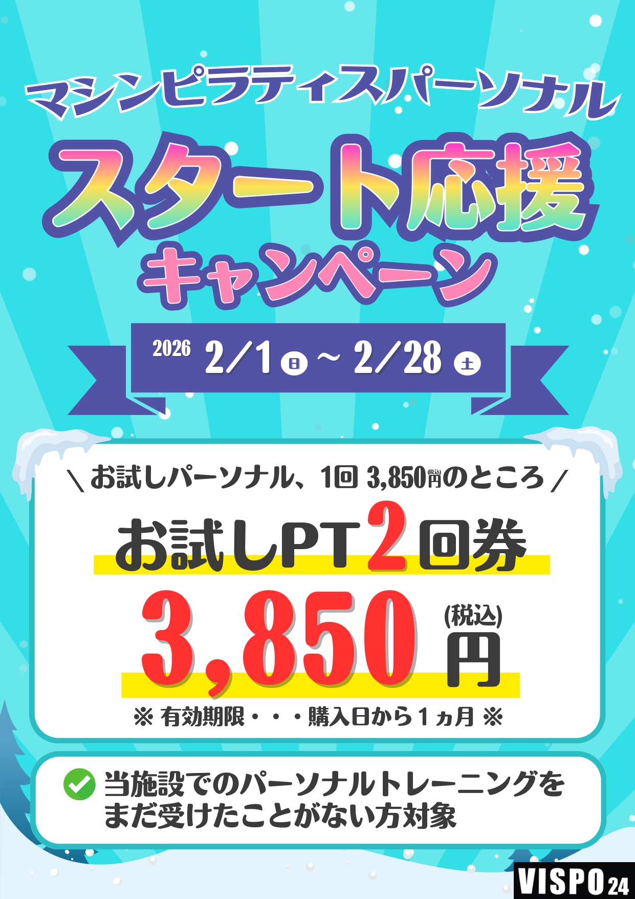 当施設でのパーソナルトレーニングが初めての方対象となりますので、